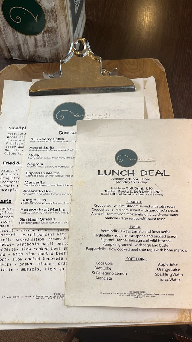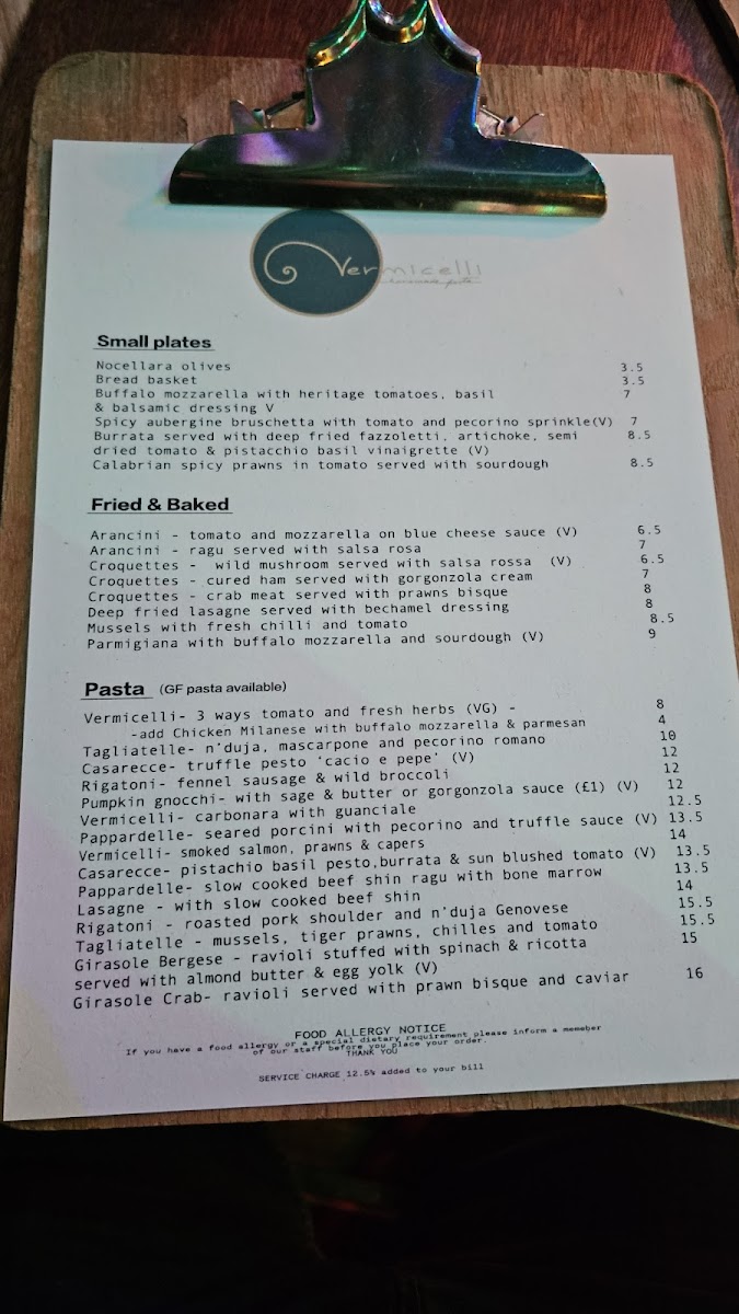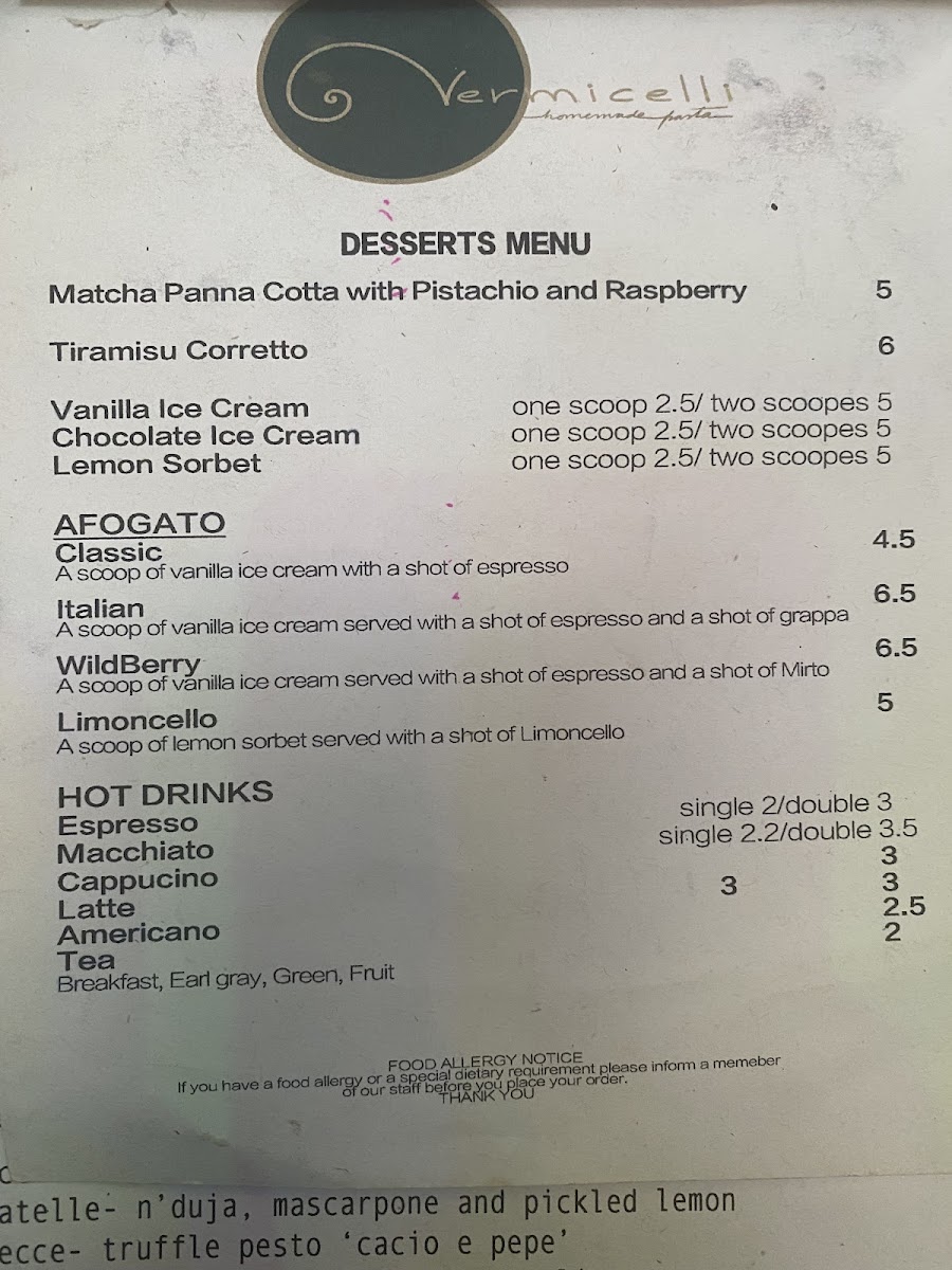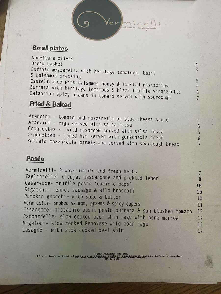 Vermicelli Fresh pasta and Sourdough Pizza (Tooting Market) Menu