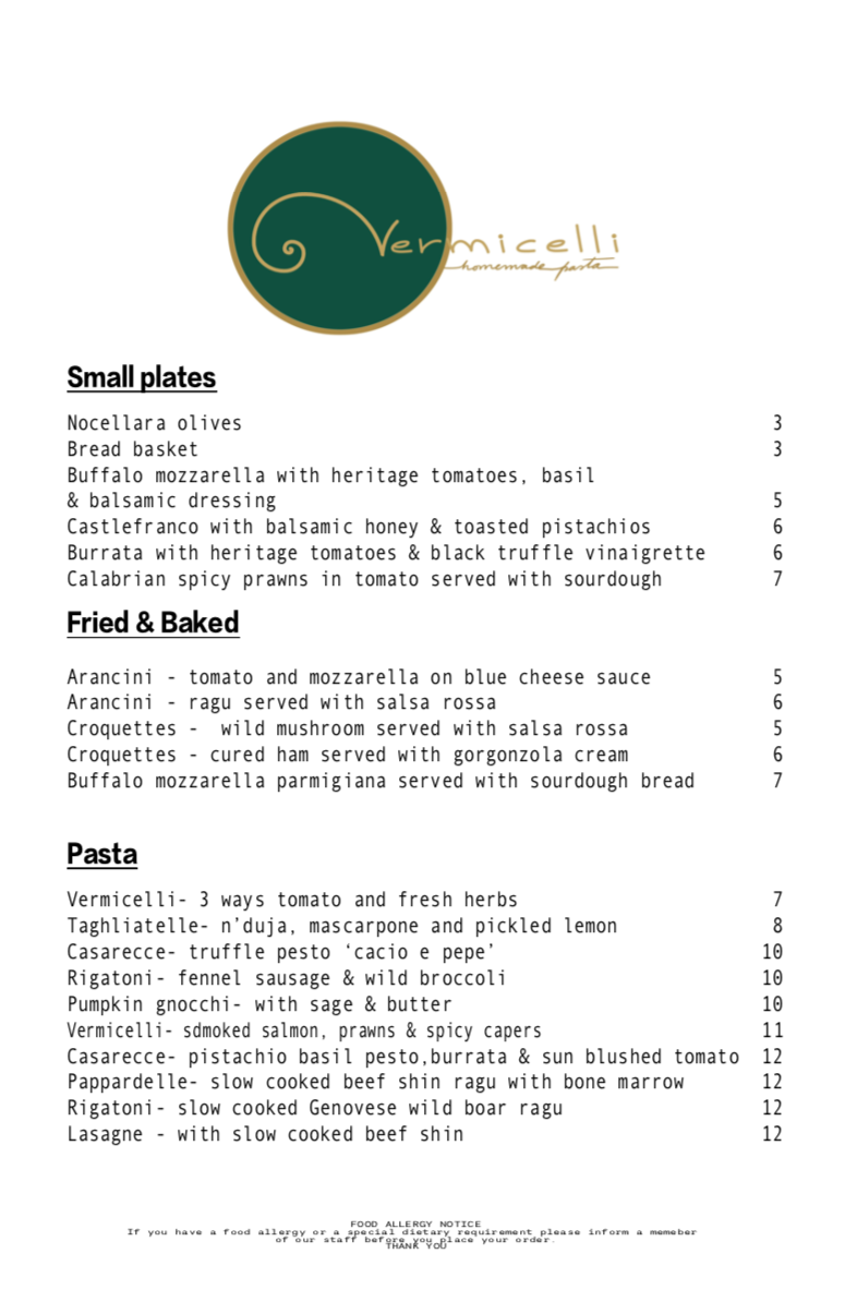 The menu at Vermicelli Fresh Pasta and Sourdough Pizza offers a thoughtfully curated selection of Italian-inspired dishes that feel both comforting and approachable. It’s designed to suit a casual meal, whether you're stopping by for a relaxed lunch, sharing small plates with friends, or enjoying a cozy dinner after a busy day.
